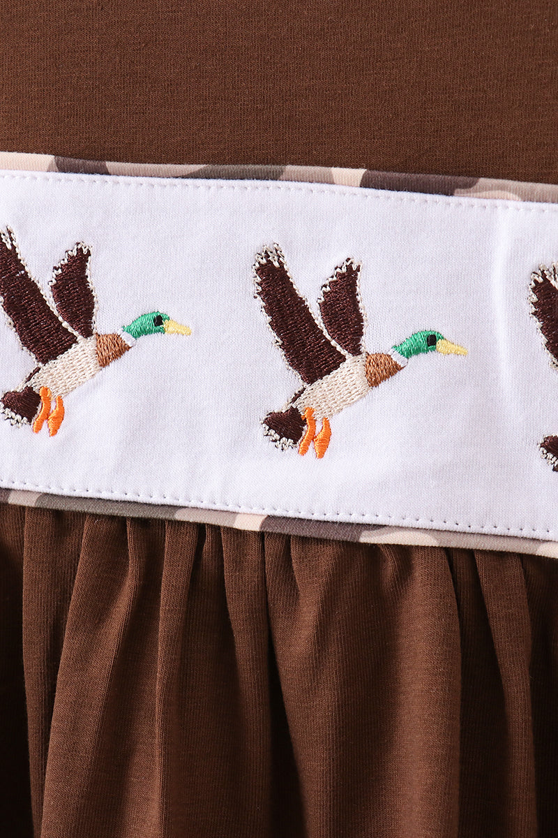 Bring a splash of fun to any outfit with this camouflage duck embroidery ruffle pants set. The playful duck design adds character, while the ruffle detailing brings a charming, lighthearted touch. Perfect for lively days and casual adventures, this set pairs comfort with unique style for a delightful look that stands out.