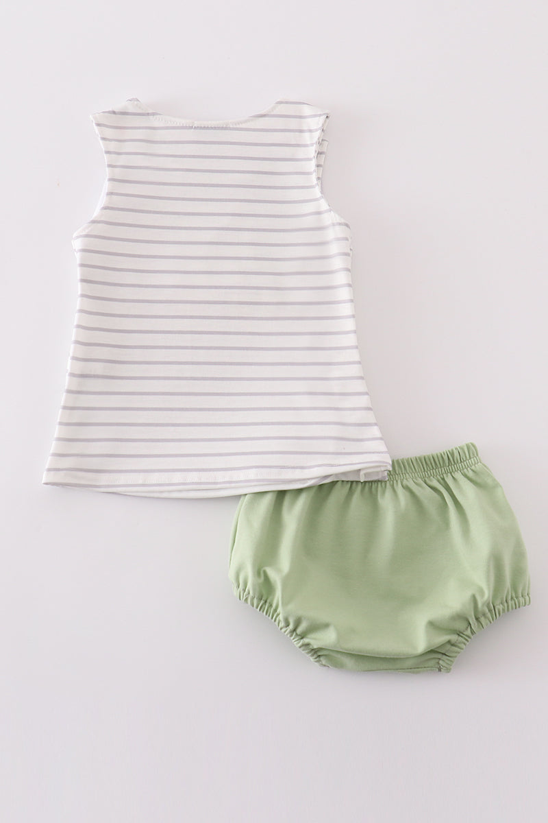 Hop into spring with our Easter stripe bunny applique boy bloomer set! This set features a cute bunny applique and is perfect for any Easter celebration. Comfortable and stylish, your little one will be ready for egg hunts and family gatherings.