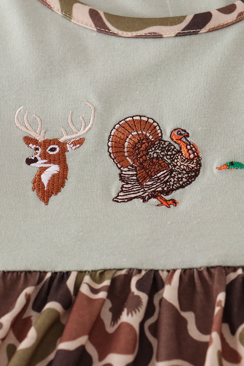Green camouflage hunting embroidery ruffle pants set