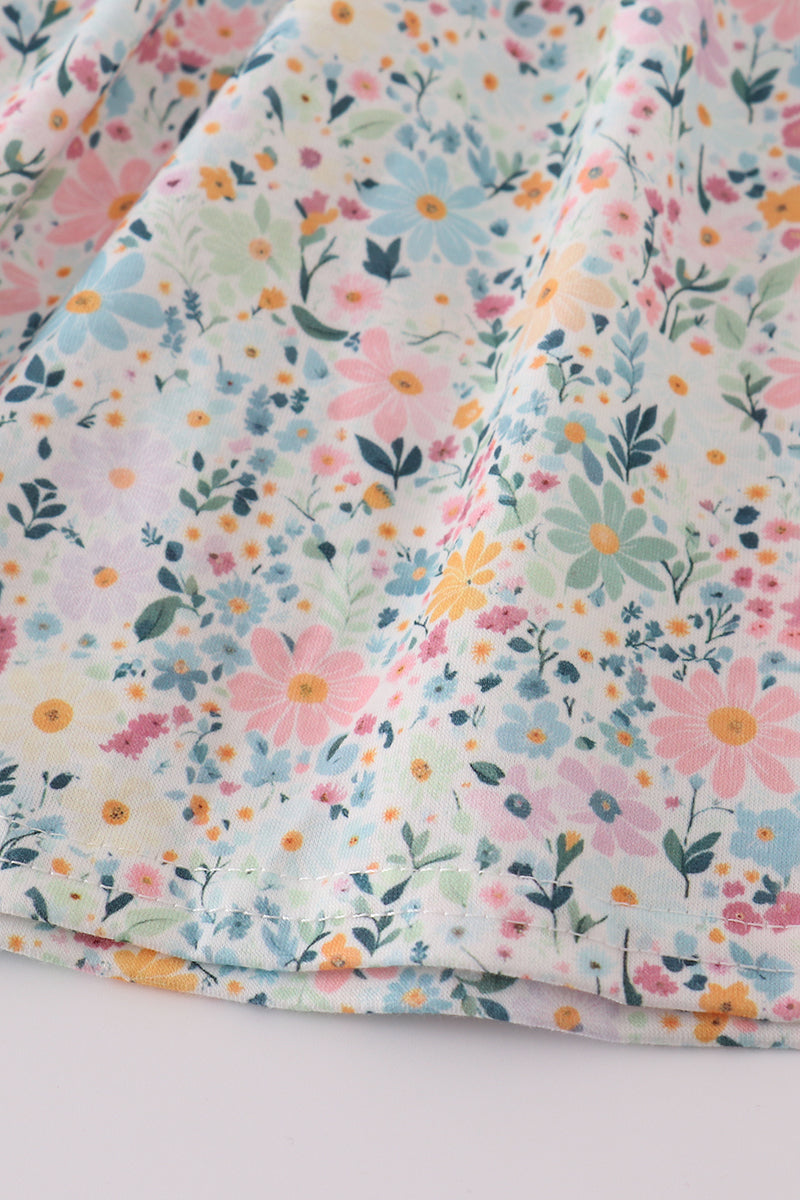 Green floral pumpkin embroidery smocked ruffle pants set