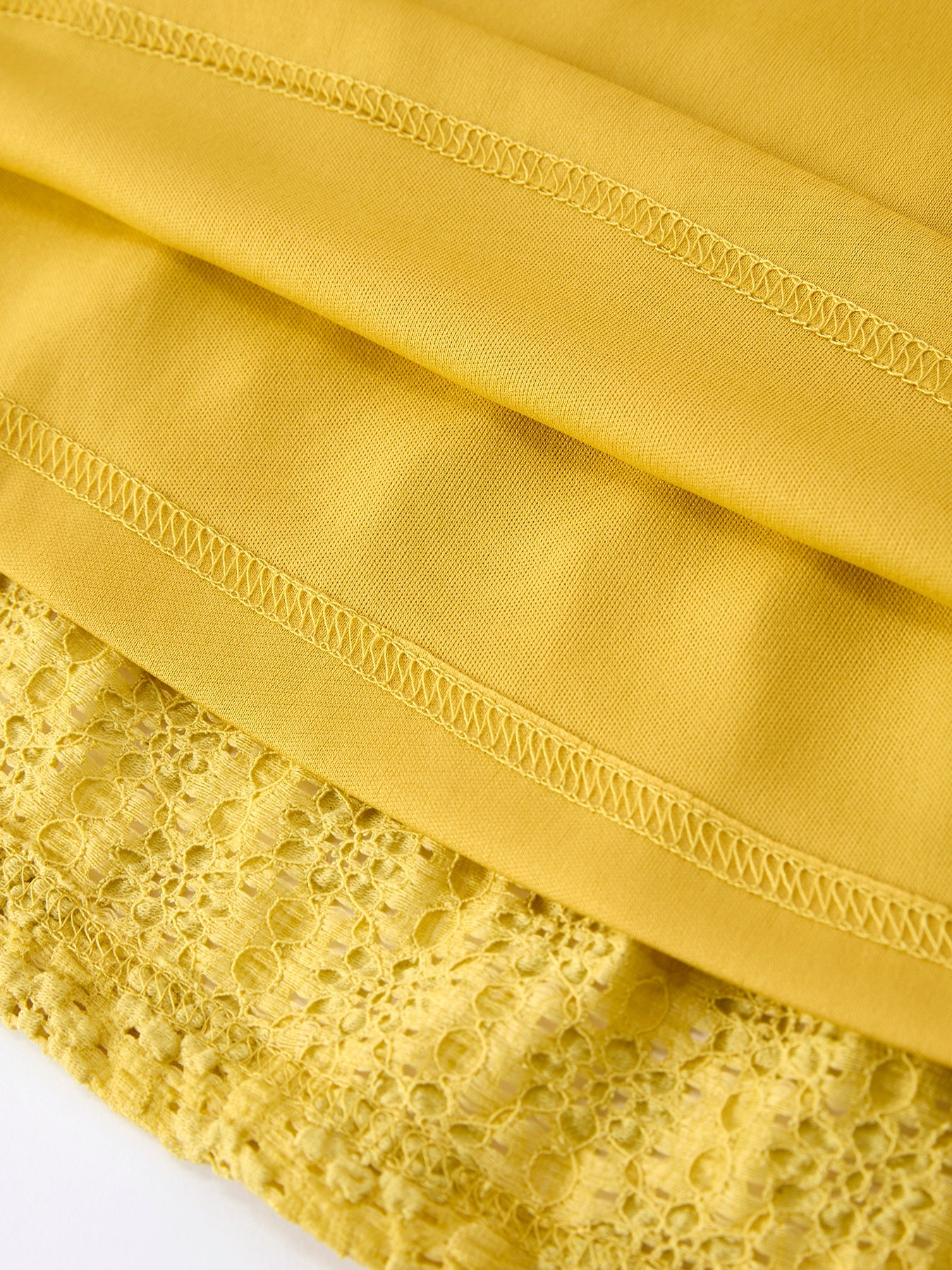 Spring Solid Girls Lace Tiered Dress With Scrunchie Elevate her wardrobe with this charming tiered dress, perfect for spring celebrations and everyday elegance. Delicate lace detailing adds a touch of sophistication, while the flowing tiered silhouette flatters and moves beautifully. The included matching scrunchie keeps hair neat and coordinates effortlessly with the dress. Ideal for photos, playdates, or special occasions, this versatile piece transitions seamlessly from season to season. Comfortable enough for all-day wear, it's a go-to favorite that parents and kids love.